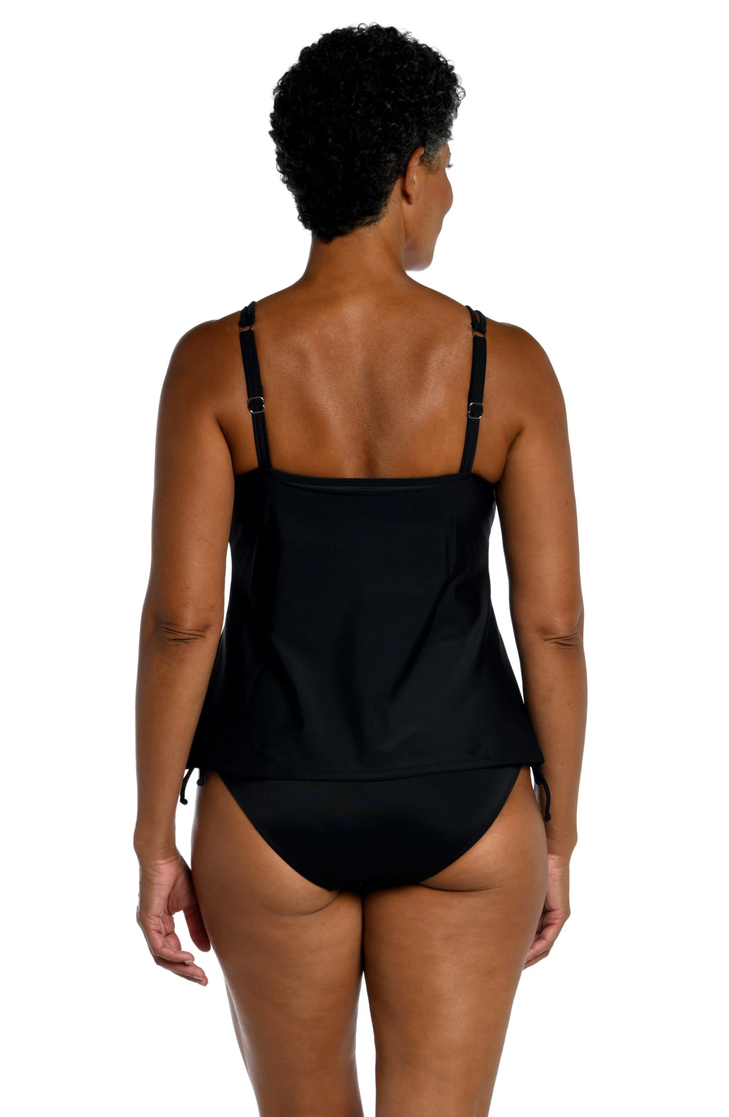 We’re wild about this tankini. The animal print up top fades into solid black for figure-defining style. A high-neck design showcases your shoulders, drawing the eye upward to create a balancing effect. Part of the Maxine Movement collection, this suit delivers a higher level of chlorine resistance, shape retention and comfortable compression for a sleek silhouette.